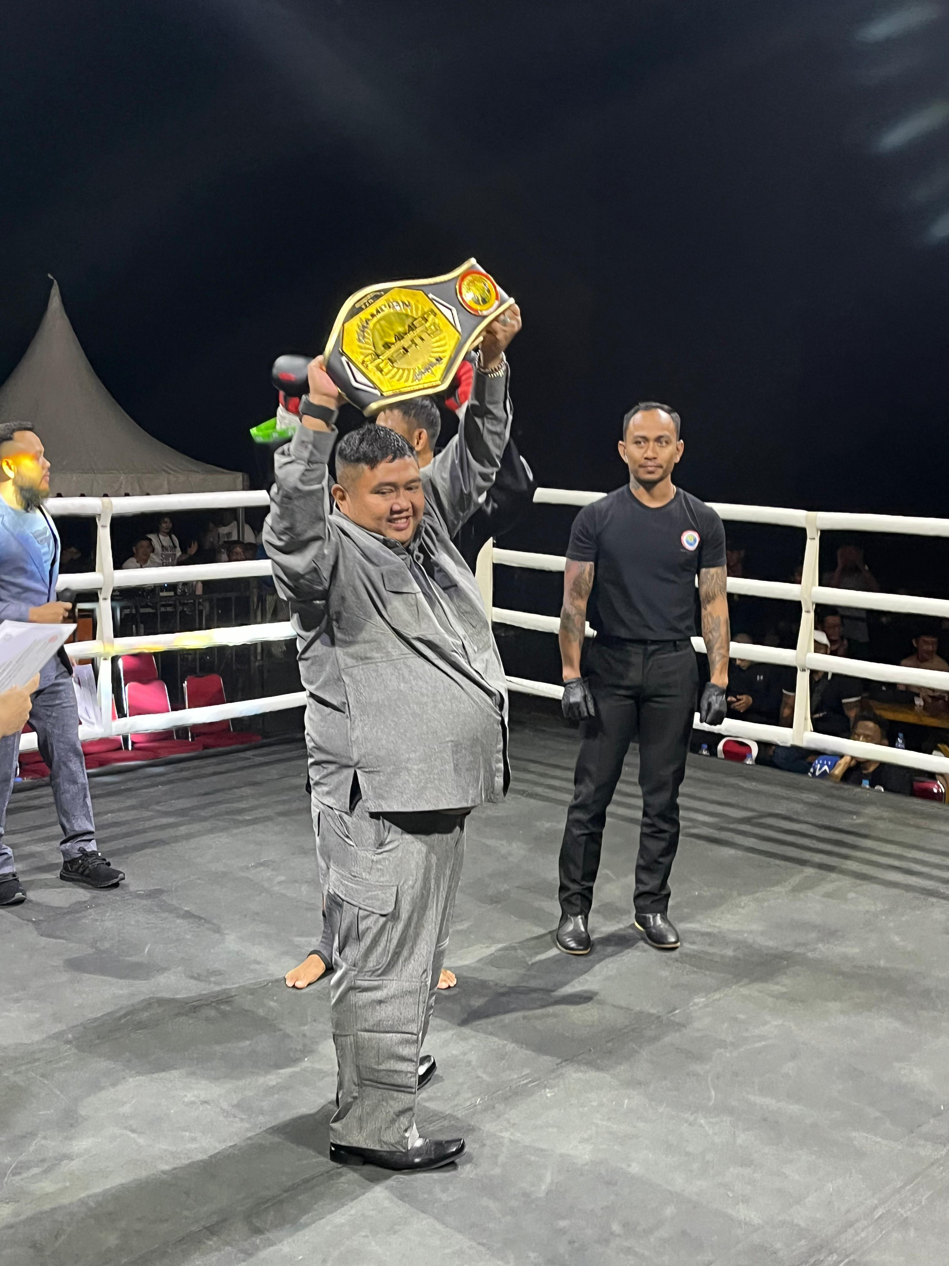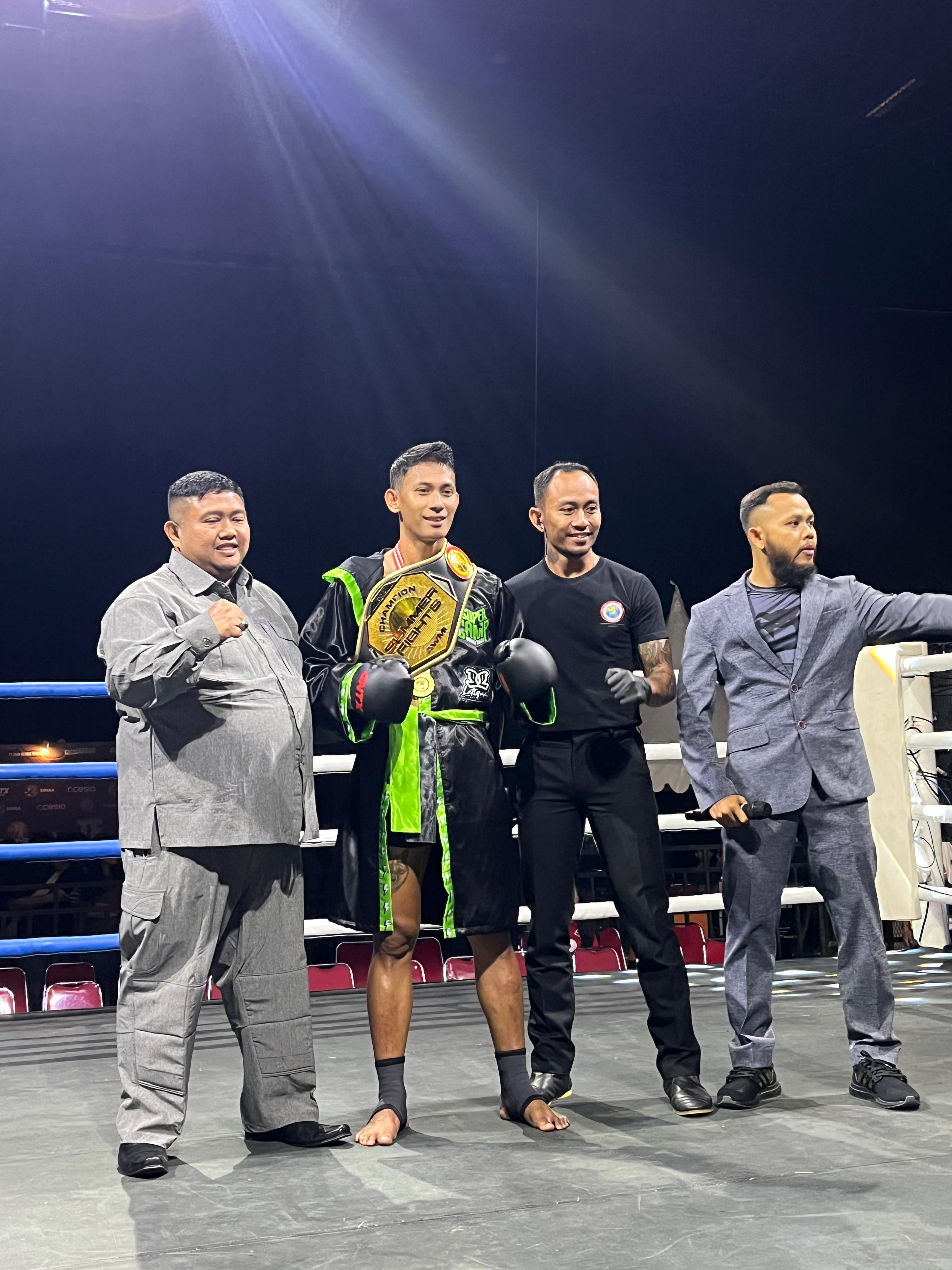 Salah satu laga paling ditunggu adalah main event yang menampilkan Dwi Sukarno, petarung asal Banten yang dijuluki Raja K.O..